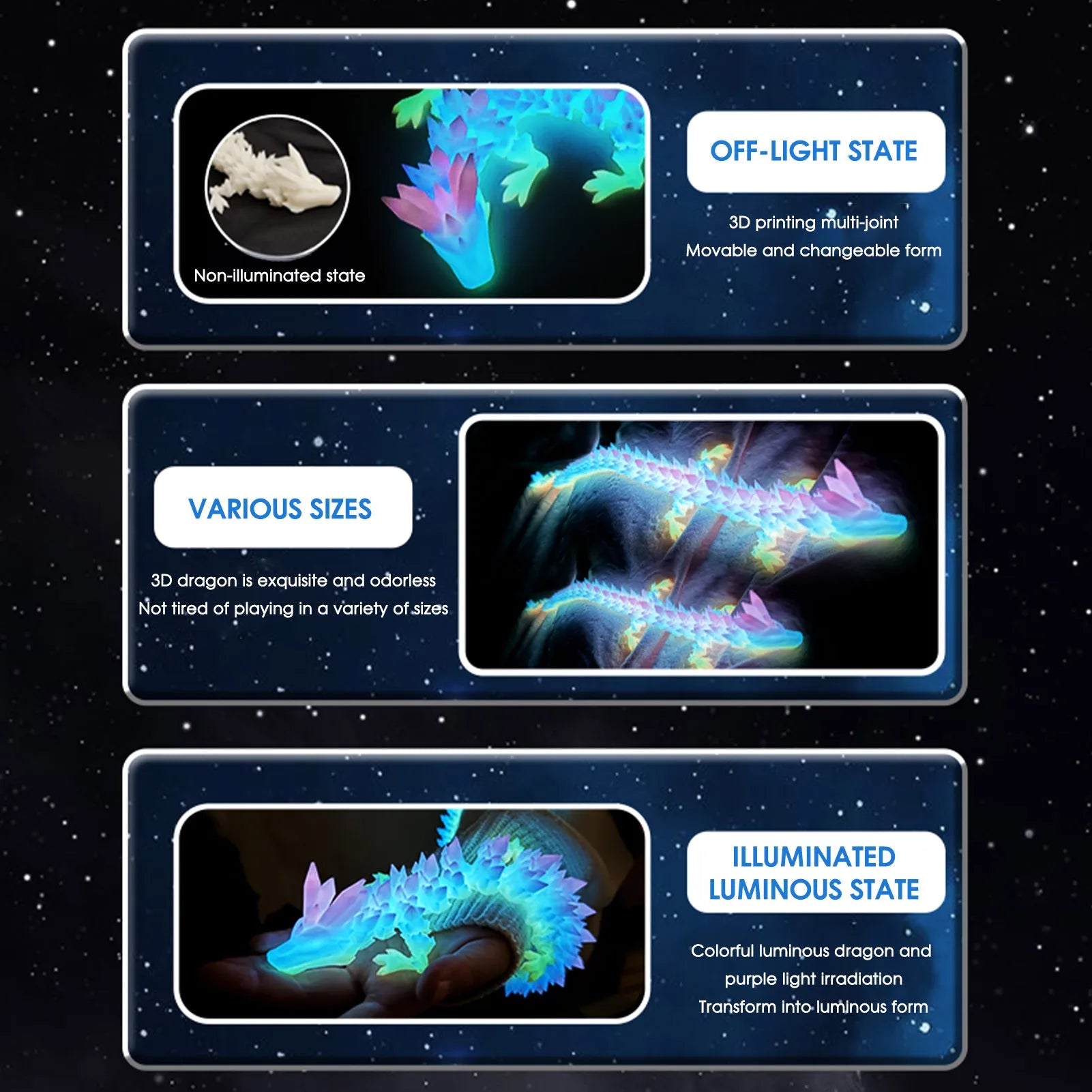 High-Quality 3D Printing Craftsmanship: Made with precision 3D printing technology, this dragon model toy showcases intricate details and smooth textures. Its durable and lightweight structure makes it an ideal portable figurine ornament for collectors and fantasy lovers.