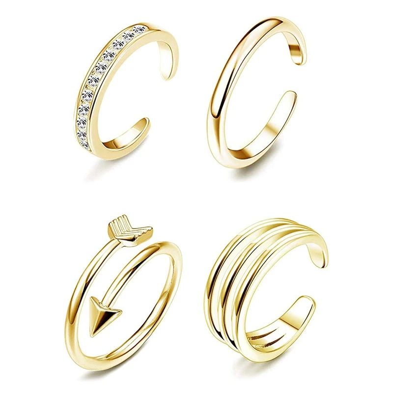 4Pcs Simple Alloy Crystal Foot Ring Adjustable Opening Toe Ring For Women Girl Summer Beach Vacation Jewelry Finger Ring