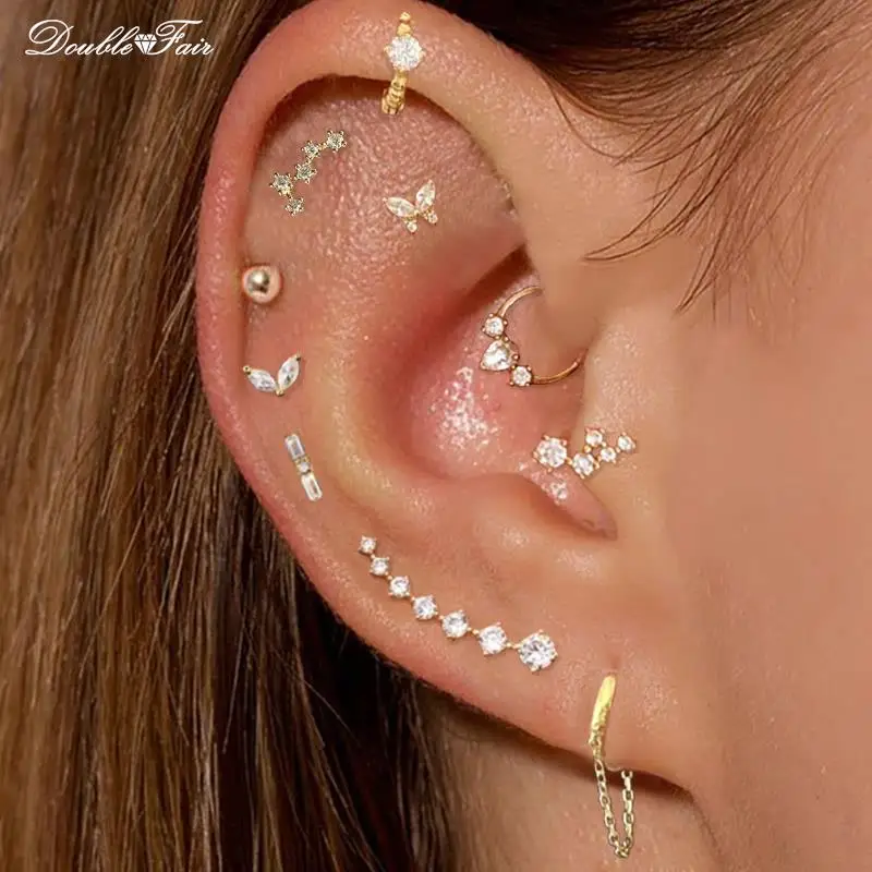 Dainty Y2k Ear Piercing Helix Daith Snug Earrings for Women 1PC Cartilage Tragus Clicker Septum Ring With Chain INS Jewelry Gift
