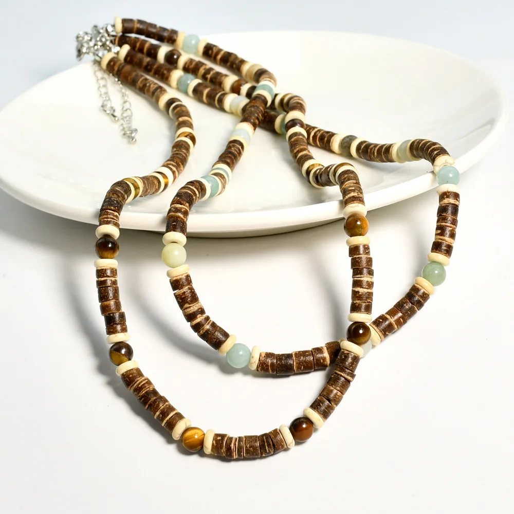 Laut Turquoise Wood Necklace Boho Beach Surfer Adjustable Bead Necklaces for Women Men Summer Jewelry Gifts