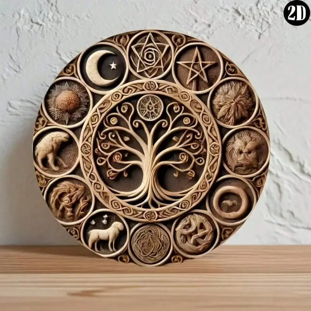 # Natural Symbols Plaque, Witchcraft Pagan Home Bar Decor In the quiet corners of a cozy cafe or garage retreat, this striking plaque whispers ancient wisdom. Adorned with natural symbols steeped in pagan tradition, it transforms any space into a sanctuary for those who honor the craft. Whether displayed above a bar, nestled on a shelf, or commanding a wall, it speaks to the soul of witches, mystics, and seekers alike. Perfect for the friend who finds magic in everyday moments—a gift that says you understand their path and celebrate their spirit. A conversation starter that blends mystique with home style.